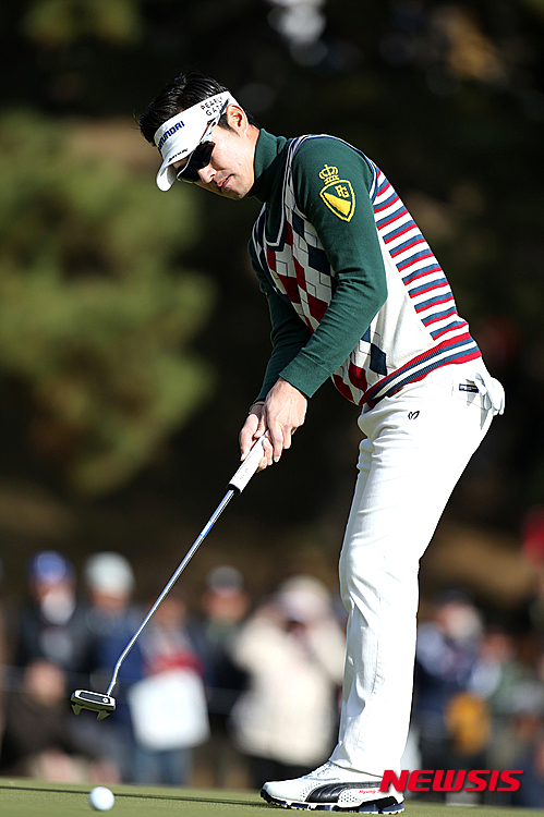 【서울=뉴시스】고승민 기자 = 6일 일본 도쿄 요미우리 컨트리클럽에서 열린 제52회 골프 니폰 시리즈 JT컵 FR에서 김형성이 3번홀 퍼팅을 하고 있다. 2015.12.06. (사진=뉴시스 제공)
